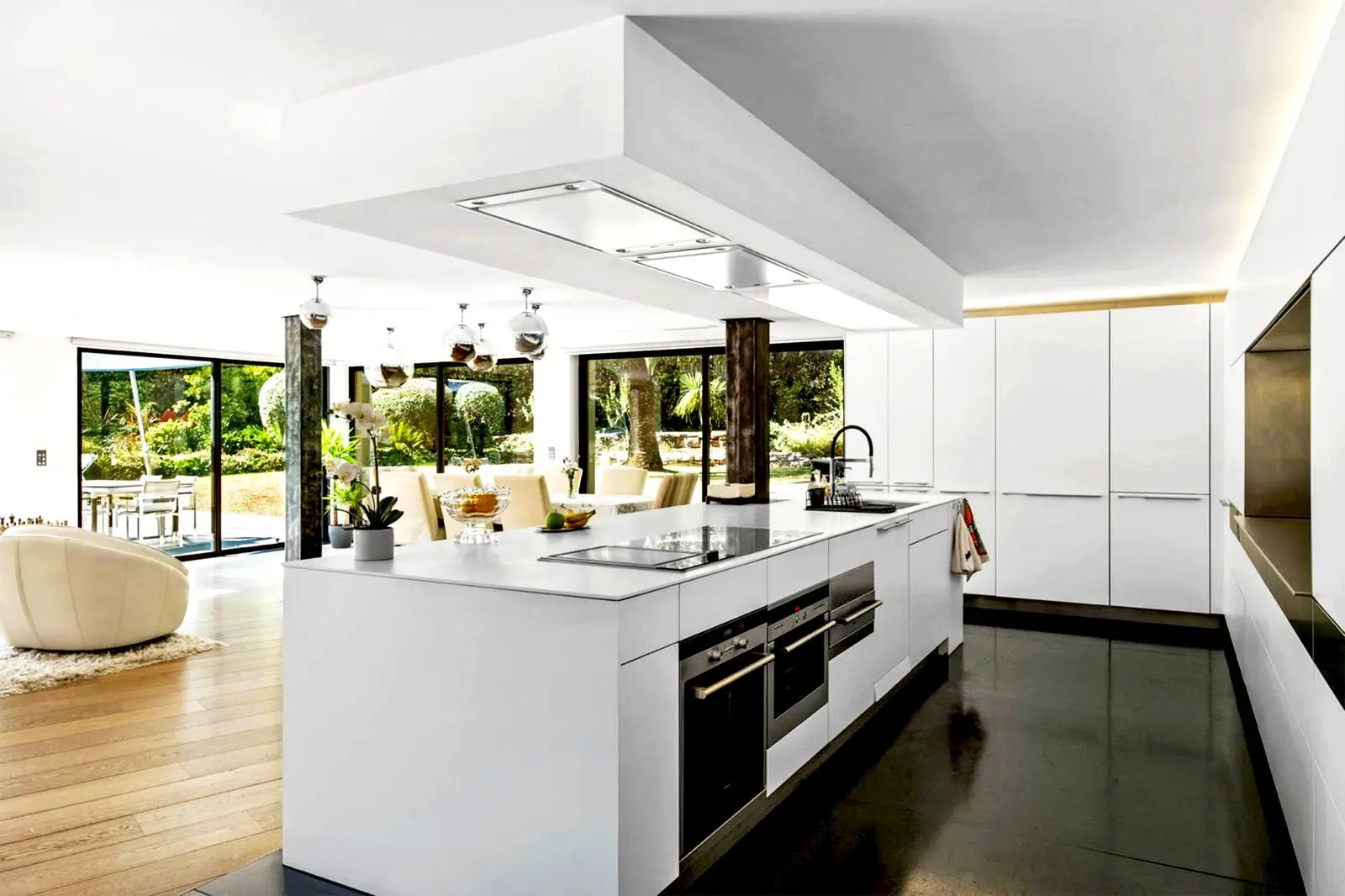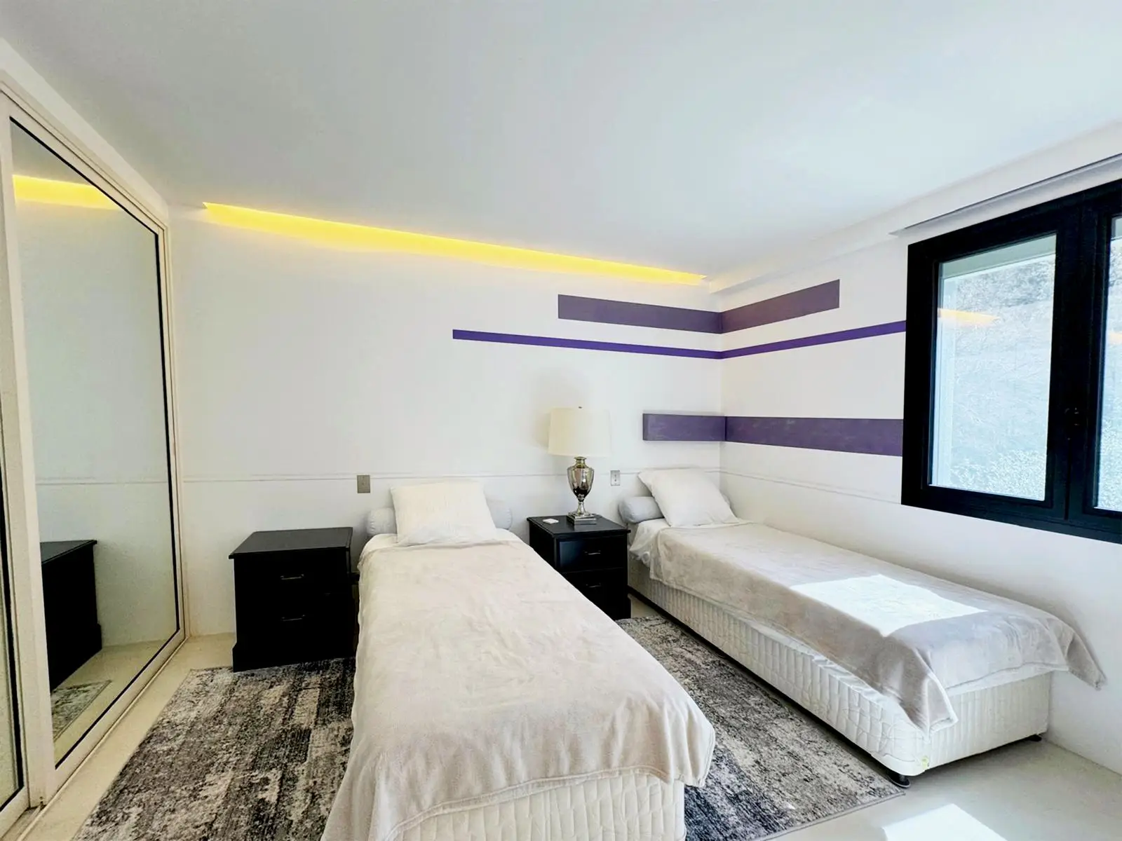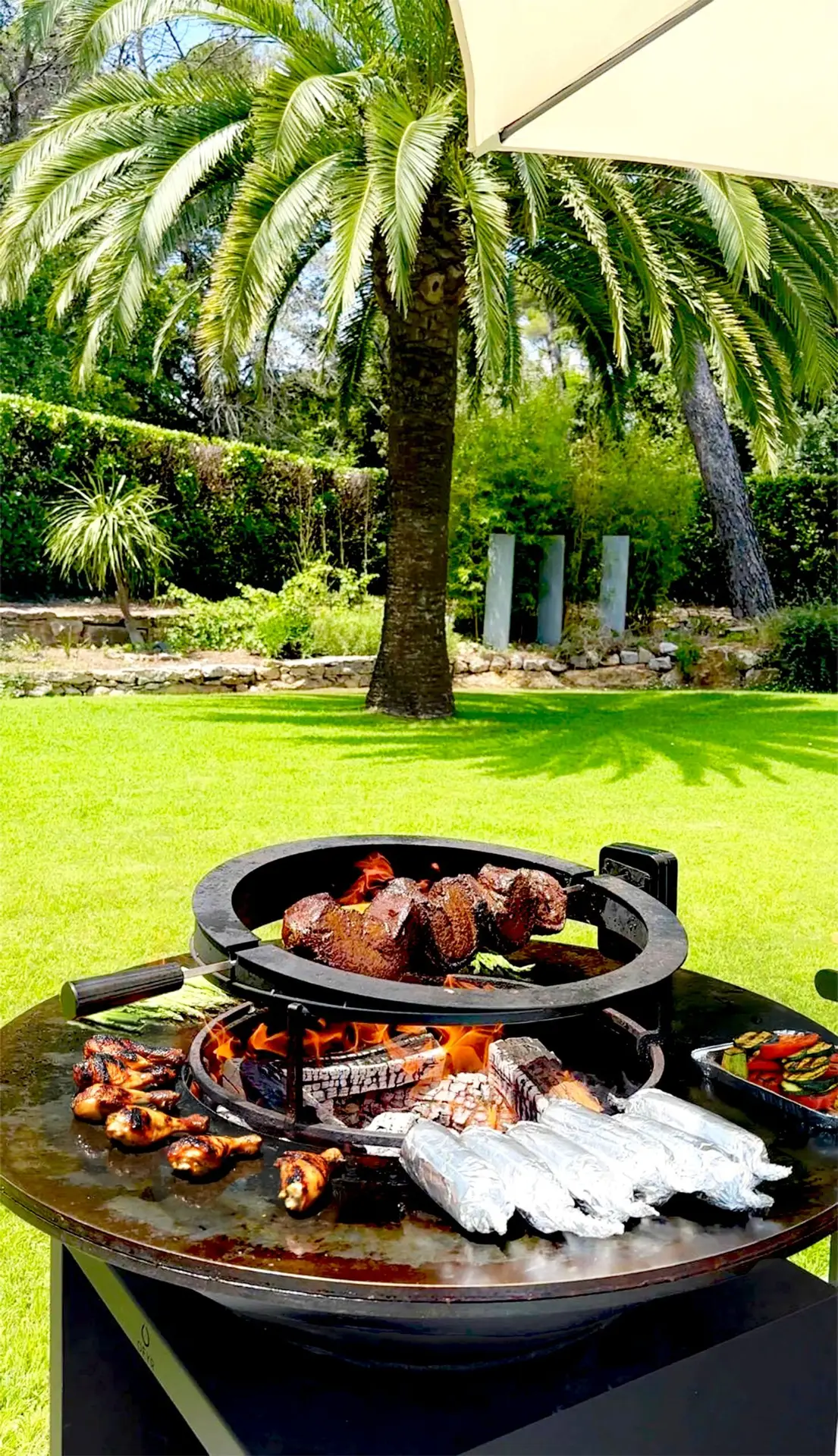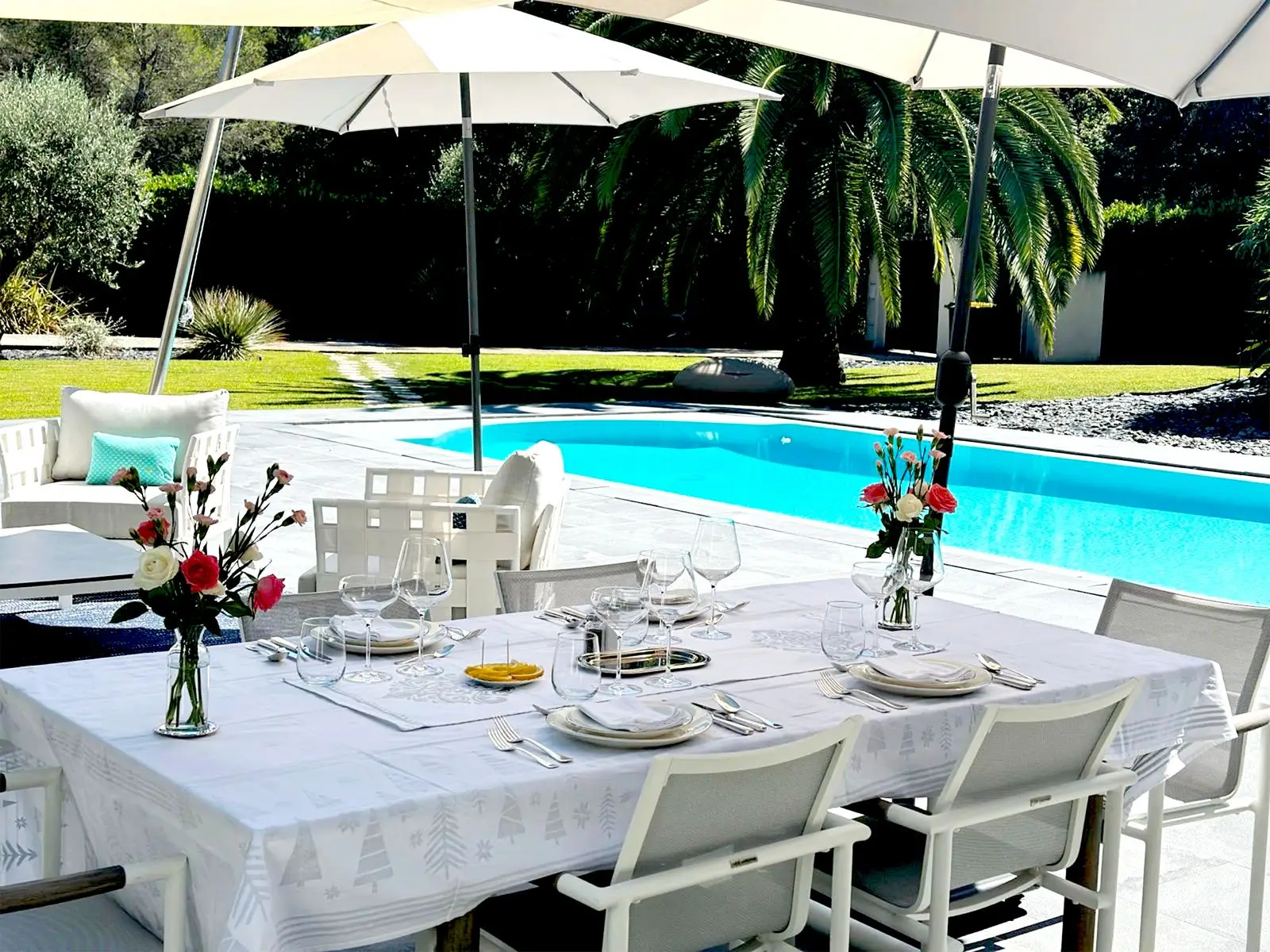 In the sought-after private estate Les Parcs de Mougins, just minutes from Mougins School, the Cannes-Mougins golf course, and the highway access, this villa offers a vast reception area with a double-sided fireplace that naturally extends outdoors. The kitchen (by Bulthaup), with its central island, faces the dining room. Still on one level, there are two en-suite bedrooms, including a master suite with a full bathroom and walk-in closet. A mezzanine—used as an office, library, and gym—overlooks the living room.
