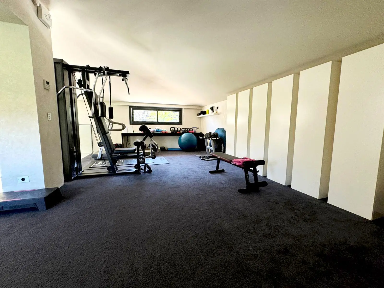 Une cave à vin vient compléter cet ensemble. Le jardin entièrement plat jouit d’une superbe piscine miroir chauffée de 12x6m. Carport pour 3 voitures.