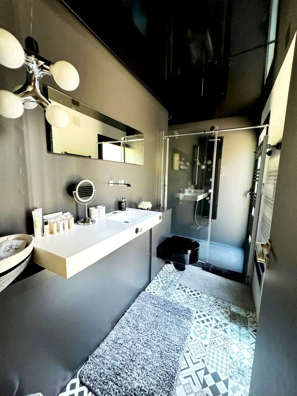 Le volet technique n’est pas en reste : climatisation réversible, alarme, système domotique, caméras, internet par Starlink.